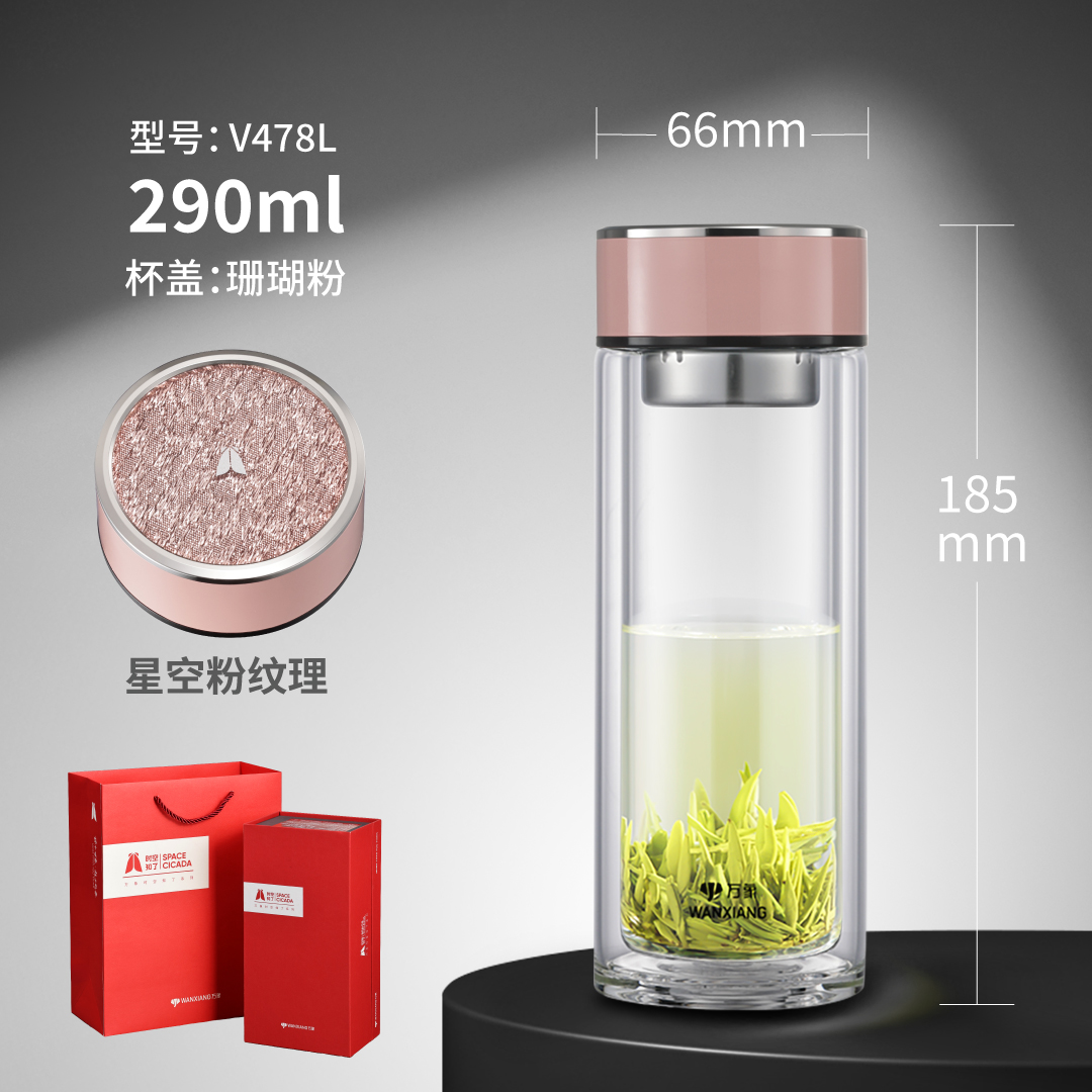時(shí)空知了雙層玻璃杯 V478L 臟粉色 青瓷色 淺米黃:¥119